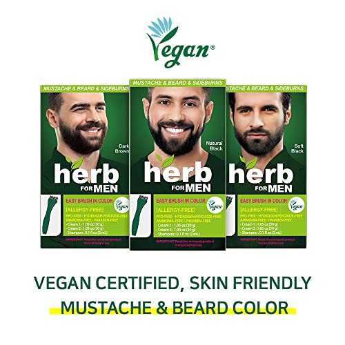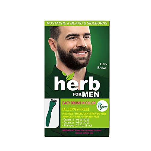 Herb For Men, PPD & Ammonia Free Mustache & Beard Dye, Vegan Natural Ingredients, Odorless, No More Skin Irritations from Coloring for Sensitive Skin – Dark Brown.