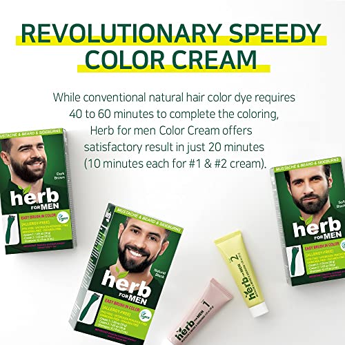 REVOLUTIONARY SPEEDY COLOR CREAM : While conventional natural color dye requires 40 to 60 minutes to complete the coloring, Herb for Men Color Cream offers satisfactory result in just 20 minutes (10 minutes each for #1 & #2 cream).