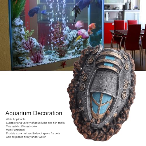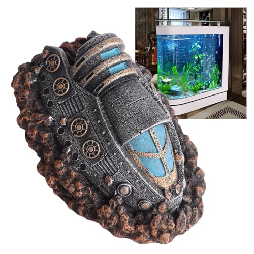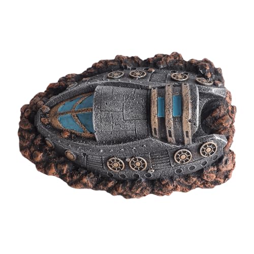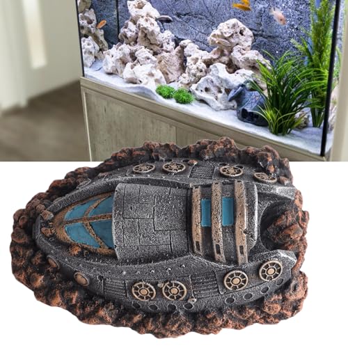 Enhance your aquarium with our lifelike shipwreck decor, crafted in a unique spaceship shape that adds character to any fish tank. Made from premium resin material, our aquarium ornament ensures environmental safety and no impact on water quality, providing a secure habitat for aquatic pets. Suitable for various aquariums and fish tanks, it complements different tank styles. Providing additional rest and hideout space, it infuses a touch of science fiction and mystery, captivating attention and enhancing visual appeal.