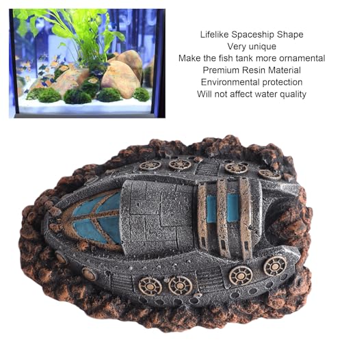 Safe Resin Material: Made from premium resin material, our aquarium spaceship ornament is environmentally friendly and ensures no impact on water quality, providing a safe habitat for your aquatic pets.